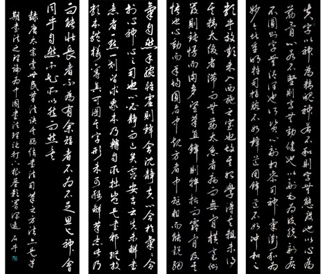 陳必滔先生對傳統(tǒng)文化藝術(shù)精神有自已的理解,那種由學(xué)養(yǎng)化育出來的審美理想使他對書法產(chǎn)生執(zhí)著的追求。他恪守“技進乎道”的原則,從不同角度分析經(jīng)典、理解經(jīng)典、學(xué)習(xí)經(jīng)典,取精用宏,自然形成了對歷代經(jīng)典碑帖的“活化”。“活化”書法的經(jīng)典,他能做到四個“入”:一是“身入”,即深入到書法經(jīng)典碑帖中,溯本求源,由師古入之“跡”,提升到師古人之“心”。二是“心入”,即立足“原點”“心隨筆動”,全身心去感悟經(jīng)典作品的每一個筆觸。三是“情入”,這是所有藝術(shù)門類由技入道的重要過程,唐代孫過庭《書譜》言:“情動形言,取會風(fēng)騷之意,陽舒陰慘,本乎天地之心。”一件沒有本心和情懷的作品如何感動自己,感動觀者?四是“神入”,即調(diào)動一切藝術(shù)靈犀,忘我地與古神會,唯觀神采,不見其形,就是最高層次的通古、學(xué)古。品嘗書法作品,從一根線條便可讀懂一個人。書家在他充滿意味的線條和書法結(jié)體中表述了他對生活與生命的解讀,中國書法講究字如其人、見字如見人,筆墨從心出,心神合一。創(chuàng)作者在不經(jīng)意間,已經(jīng)在一波三折的線條中將他的精神狀態(tài)和生活狀態(tài)呈現(xiàn)出來。從陳必滔先生的書法作品中,可以讀出他人品的純正和內(nèi)心的磊落。
