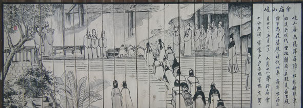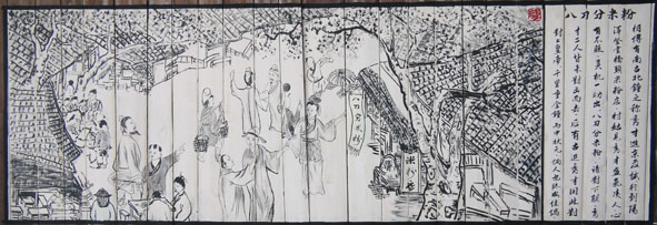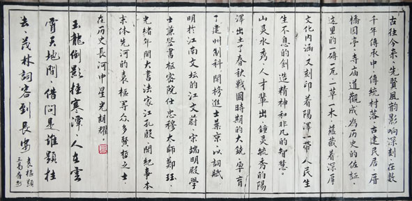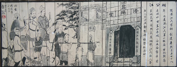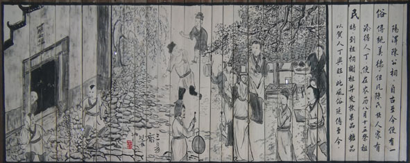 這些圖文并茂的畫,反映名人軼事的有:袁樞著書、村民捕虎、葉京、江文蔚、江禮殷等;反映名勝古跡的有:陽澤烈士陵園、江公祠、明清古民居;反映特產(chǎn)和民俗的有:八刀分米粉、岐山廟會等,可以說小橋鎮(zhèn)的文化旅游景觀節(jié)點與亮點都集中在這里,也可以說是小橋鎮(zhèn)的十里文化旅游景觀走廊的濃縮版或精華版。