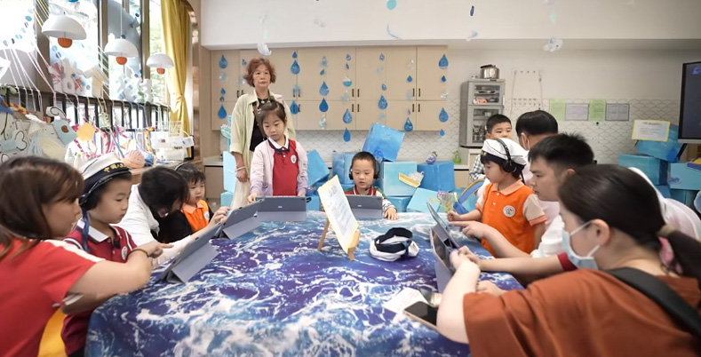 幼兒園為孩子們打造了12個各具特色的“故事游園館”,引導孩子們在《小蝌蚪找媽媽》《西游記》等經典童話故事中感受真、善、美;在閩都故事、福文化故事中了解福州的民俗文化,萌發愛家鄉的情感;在《雞毛信》等紅色故事中感受英雄的力量……