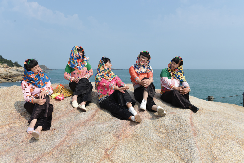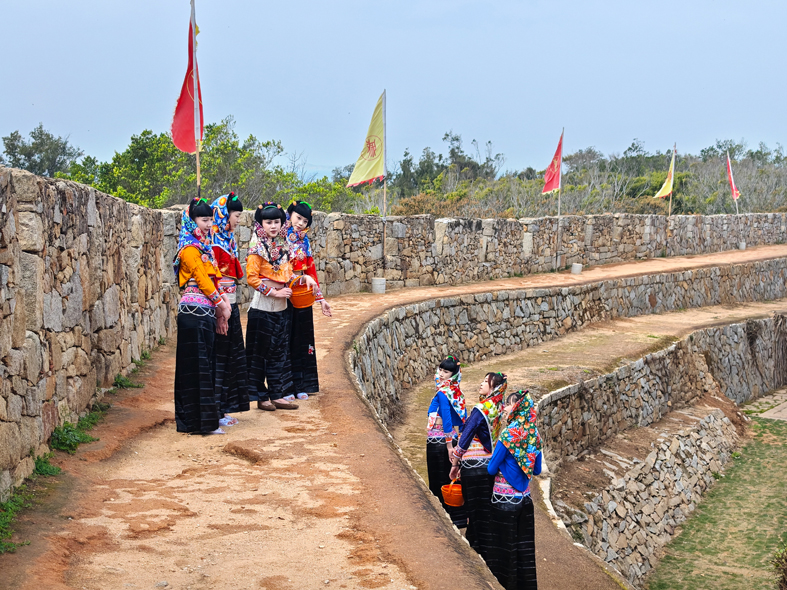 惠安女作為福建三大漁女之一,是福建泉州惠安縣等海邊的一群特殊的民間風(fēng)情女人,以勤勞智慧、敢拼敢干而聞名?;莅才椏梢杂昧鱾饔诿耖g的一句順口溜來概括:“封建頭,民主肚,節(jié)約衣,浪費(fèi)褲。”惠安女的頭部總是嚴(yán)嚴(yán)實(shí)實(shí)裹著頭巾,卻大方地露出肚臍,上衣短小,褲管寬大,所以稱節(jié)約衣和浪費(fèi)褲?;莅才椨兄鴰装倌隁v史、入選首批國(guó)家級(jí)非物質(zhì)文化遺產(chǎn)名錄,她們頭戴花色頭巾,身著短上衣、寬筒褲,銀腰帶束出婀娜身姿,五彩斑斕的裝扮與海天相映成趣,不僅是閩南傳統(tǒng)女性的代表,更承載著深厚的地域文化底蘊(yùn)。在閩南的碧海藍(lán)天下,惠安女宛如靈動(dòng)的文化符號(hào),以其獨(dú)特的服飾與堅(jiān)韌的精神,在歲月長(zhǎng)河中熠熠生輝。此次專程奔赴惠安縣崇武鎮(zhèn),我懷揣著對(duì)這份獨(dú)特風(fēng)情的向往與敬意,希望用鏡頭定格惠安女最真實(shí)、最鮮活的模樣。拍攝過程中,我穿梭于漁村街巷,聚焦她們織網(wǎng)、勞作、休憩等生活場(chǎng)景,精心選取 12 幅作品,試圖從不同角度展現(xiàn)她們風(fēng)情萬(wàn)種的精神面貌,讓更多人了解惠安女,了解惠安女服飾的文化,同時(shí)了解服飾背后堅(jiān)毅勇敢的“惠女精神”。