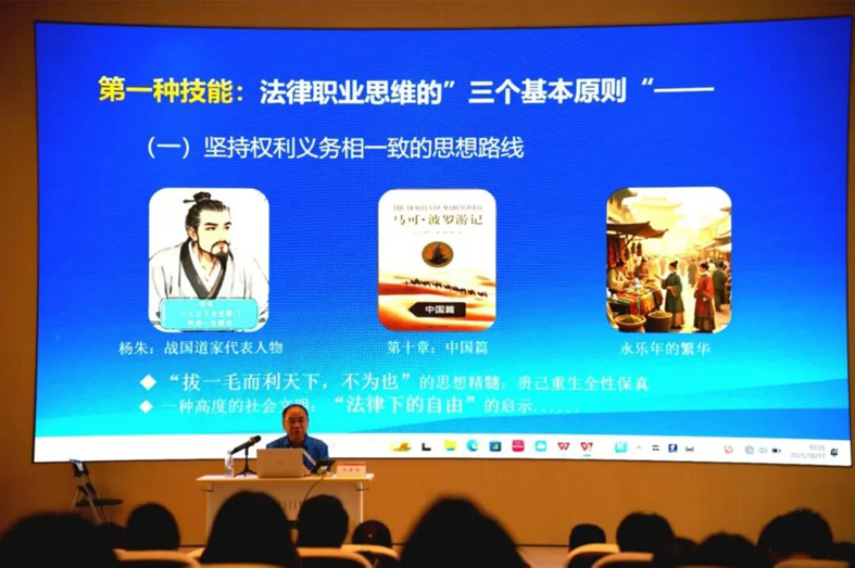 ——在 “拓視野” 層面,他從文明源頭切入,剖析中西方法治文化差異,指出西方法治 “權(quán)力制衡” 與中國法治 “德法共治” 的不同特點(diǎn)。他強(qiáng)調(diào),法治建設(shè)不能走 “拿來主義”,新生既要借鑒西方優(yōu)秀法治成果,更要堅(jiān)守中國文化根基,在對(duì)比與思考中樹立法治文化自信,以寬廣視野看待法治事業(yè)發(fā)展。