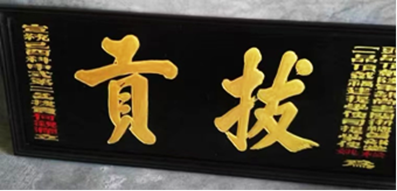 曾祖父的獨子何觀瀾,自幼便浸潤在島石村濃厚的學風中。清光緒十二年出生的他,天資聰穎,加之曾祖父何名暢深知“讀書可振家聲”,且看重島石與黎川兩地的文化淵源,便不惜重金送他赴江西黎川等地的新式學堂求學。在黎川的求學時光里,何觀瀾不僅深耕經史子集,更系統學習了算術、格致、博物等西學知識,開闊了眼界,也練就了扎實的學識功底。何觀瀾先后生下了大伯何金三和叔叔何金海。清朝末年,祖父何觀瀾參加科舉相關選拔,于宣統元年(1909年)考取“拔貢”功名——這在清代是貢生中的首等,每州縣學僅設一名額,極為難得。朝廷特意賜下黑底金字匾額,由時任閩浙總督松壽、福建提學使姚文倬共同題字,上書“拔貢”二字,側邊落款“宣統己酉科中式第二名拔貢何觀瀾立”,此匾額至今仍被族人珍藏。松壽是清朝最后一任閩浙總督,總管閩浙軍民政務,與祖父并無直接交集,題匾是按清代慣例對拔貢功名的官方認可;而福建提學使姚文倬是當時總管福建文教的最高長官,祖父考取拔貢時曾受其親自考核,姚文倬對祖父的學識十分贊賞,后來還書信勉勵他“勤于職守,造福一方”,這份書信被祖父珍藏多年,可惜后來遺失了。