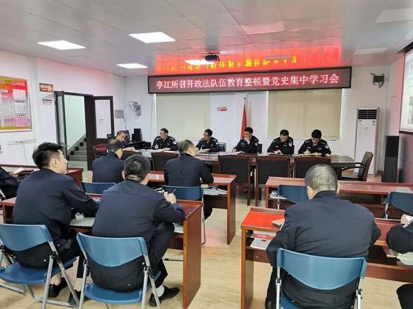 亭江派出所在所內(nèi)開設(shè)政法隊(duì)伍教育整頓專欄,及時(shí)向民警發(fā)布學(xué)習(xí)教育工作情況及傳達(dá)相關(guān)文件、會(huì)議精神和隊(duì)伍建設(shè)理論知識(shí)等內(nèi)容,定制學(xué)習(xí)筆記本,增強(qiáng)民警學(xué)習(xí)的主動(dòng)性和積極性;制作政法隊(duì)伍教育整頓應(yīng)會(huì)知識(shí)手冊(cè)和宣傳標(biāo)語、宣傳海報(bào)等相關(guān)宣傳資料,并在派出所門口、辦證大廳LED顯示屏進(jìn)行循環(huán)播放,讓民警和轄區(qū)群眾更直觀的了解隊(duì)伍教育整頓的目的和意義,為政法隊(duì)伍教育整頓工作提供良好的輿論氛圍和精神動(dòng)力。