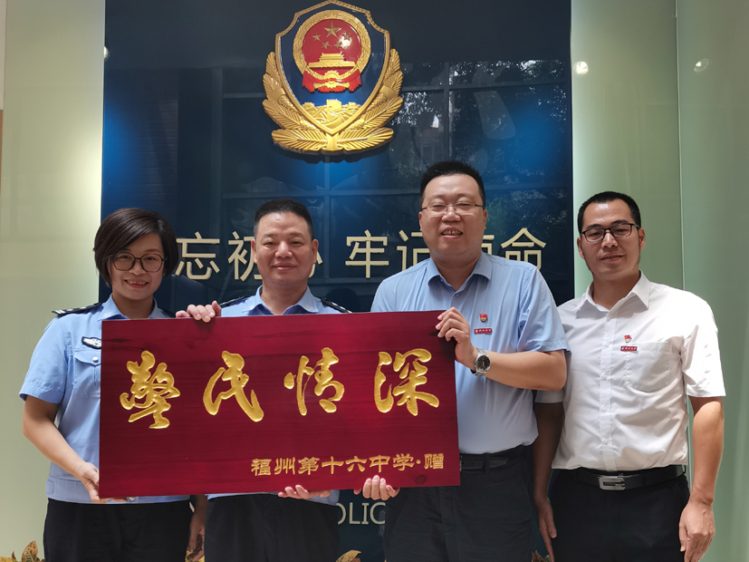 轄區(qū)學(xué)校向劉劍星所長(zhǎng)敬贈(zèng)“警民情深”牌匾。