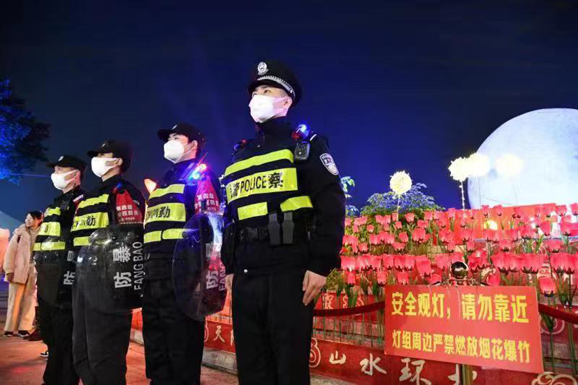 倉(cāng)前所民警在煙臺(tái)山歷史風(fēng)貌區(qū)燈會(huì)現(xiàn)場(chǎng)執(zhí)勤。