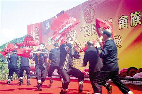 “三月三”是畬族最隆重的傳統節日。畬族是一個忠誠勇敢的民族,畬族人民以勤勞淳樸著稱。每年農歷三月初三,畬族同胞們皆換上盛裝,制作烏米飯、紅團,祭祖先拜谷神,舉行盛大歌會,載歌載舞,男女老少唱起古老的“山哈調”,跳起歡快的舞蹈,熱鬧非凡。近日,福建省各地紛紛舉行“三月三”畬族文化系列活動,精彩紛呈。