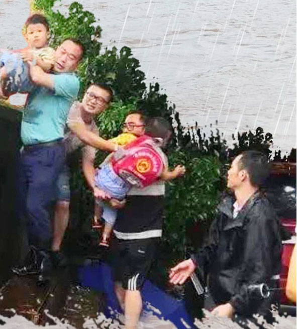 而在北城門的另一頭,邵武市委常委、組織部部長嚴(yán)軍等領(lǐng)導(dǎo)在巡查中發(fā)現(xiàn)金娃娃幼兒園暑期班61名幼兒被洪水圍困,迅速組織城管局、住建局等部門隊伍前來救援,以接力的方式,組成“人梯”,將孩子從幼兒園外墻一個一個轉(zhuǎn)移出來,受到了家長的一片稱贊。