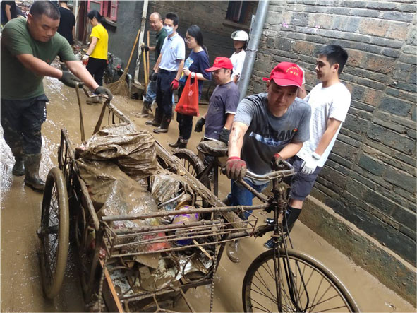 一方有難,八方支援。為盡快恢復(fù)城市的道路暢通和企業(yè)正常經(jīng)營,市直機關(guān)迅速落實“機關(guān)聯(lián)社區(qū)”“機關(guān)聯(lián)企業(yè)”工作機制,3675名機關(guān)黨員干部第一時間下沉社區(qū)、企業(yè),對接需求,為企業(yè)、社區(qū)帶去了沙包、消毒液、漂白粉等抗災(zāi)物資,與社區(qū)、企業(yè)一道開展搬運、清淤、沖洗、消殺等災(zāi)后幫扶工作。