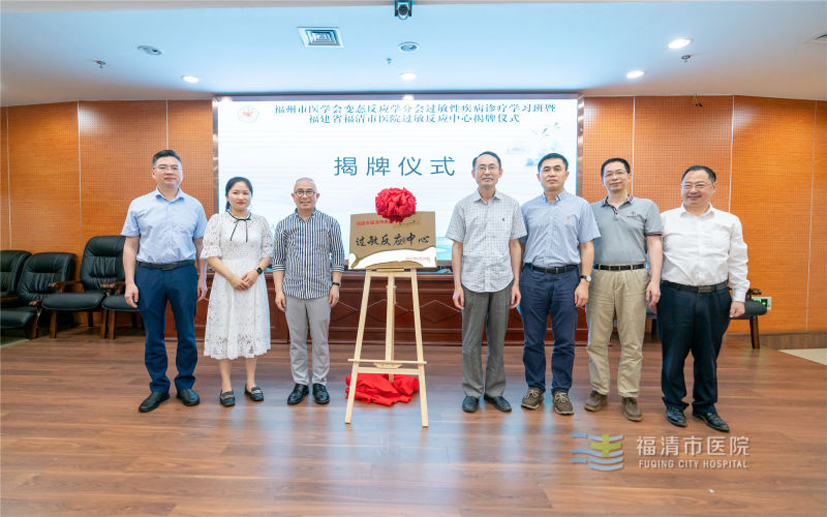 過敏性疾病廣泛涉及耳鼻喉、呼吸、皮膚、兒科、消化等多學科,為了給廣大患者提供全方位、深層次、個體化的過敏性疾病診療服務,2022年6月24日,福州市醫學會變態反應學分會聯合福清市醫院主辦召開福州市醫學會變態反應學分會過敏性疾病診療學習班,并于當日舉行福清市醫院過敏反應中心揭牌儀式。“福清市醫院過敏反應中心”的建立,可以對過敏性疾病患者進行集中規范地診治,打造精準的過敏原檢測、脫敏治療、藥物治療、特異性免疫靶向治療、健康教育以及必要的手術治療等“一站式”診療業務。