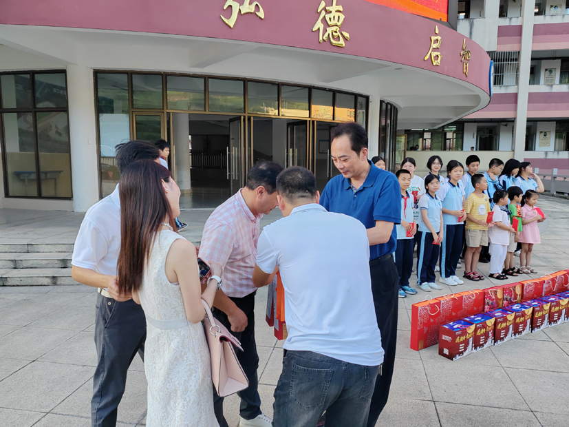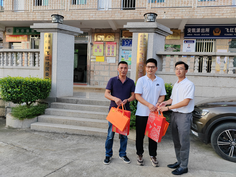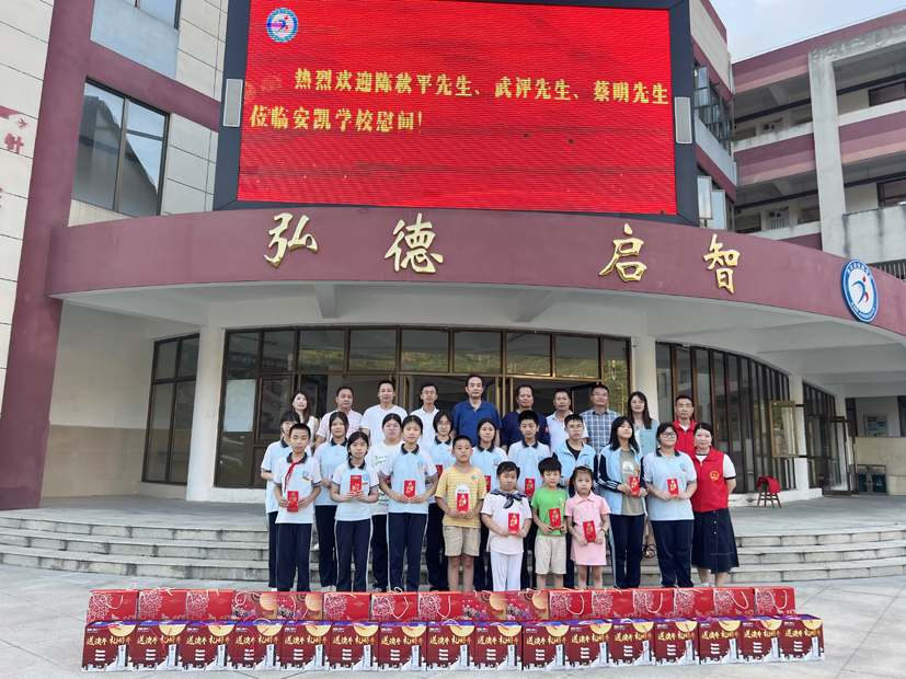 中秋期間,福建省文化廳原廳長、閩臺歷史文化研究院院長陳秋平與青年企業家蔡明慰問安凱學校貧困生。